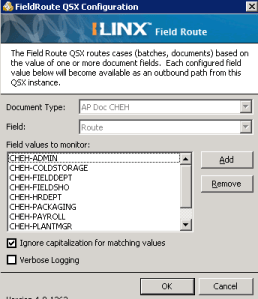 Also, our users wanted to receive email alerts when they have a document hit their queue. So, from the field route it splits out to an Alert QSX module. The alert module takes an email server, address, and message and sends an alert as the document crosses its path. (It’s useful to use the mute feature to not overwhelm the users with tons of email alerts) I have this send an email to a mail enabled group, the same group that has access to the queue. (This avoids hardcoding the alert to a single person)