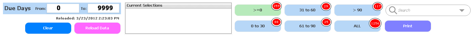 First off I had no idea that they called those little popup numbers on the iPhone ‘Badges’ until a co-worker told me. Anyways, was doing an AR-Aging Qlikview and thought it would be informative to show the amount of invoices for the various ‘buckets’ It’s not anything special, just round text objects. Basically one with Red background and white border and then another text object with a black background slightly larger in order to get the correct red center, white outline, and final black outline.