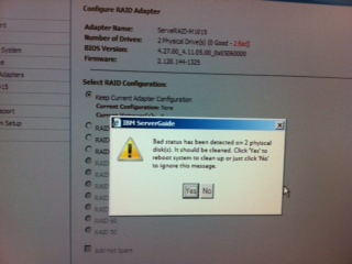 Then it brings up a screen where you can configure your JBOD disks as unconfirmed good. At that point you can use serverguide to set up the RAID…. very annoying.