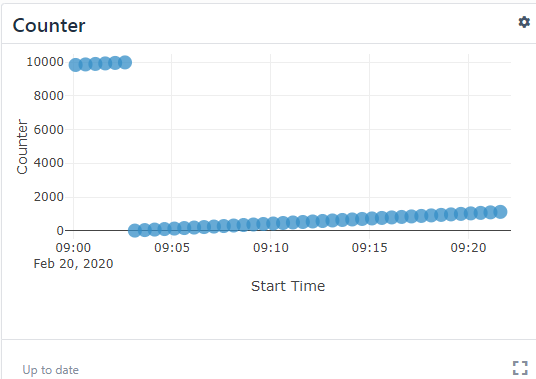 Set the X AXIS to End Time (this is when the complete app process fires, every 30 seconds in this app)