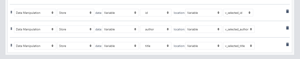 So, now what we have is a button that will grab the data from the first element in the array and pop it into three variables. Add the v_selected_author and v_selected_title using ‘input’ text box (so we can make edits and then update them back into the DB)