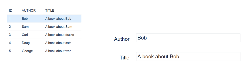 When you click the ‘Bob’ button you should see Author and Title fill in with the data from that element.