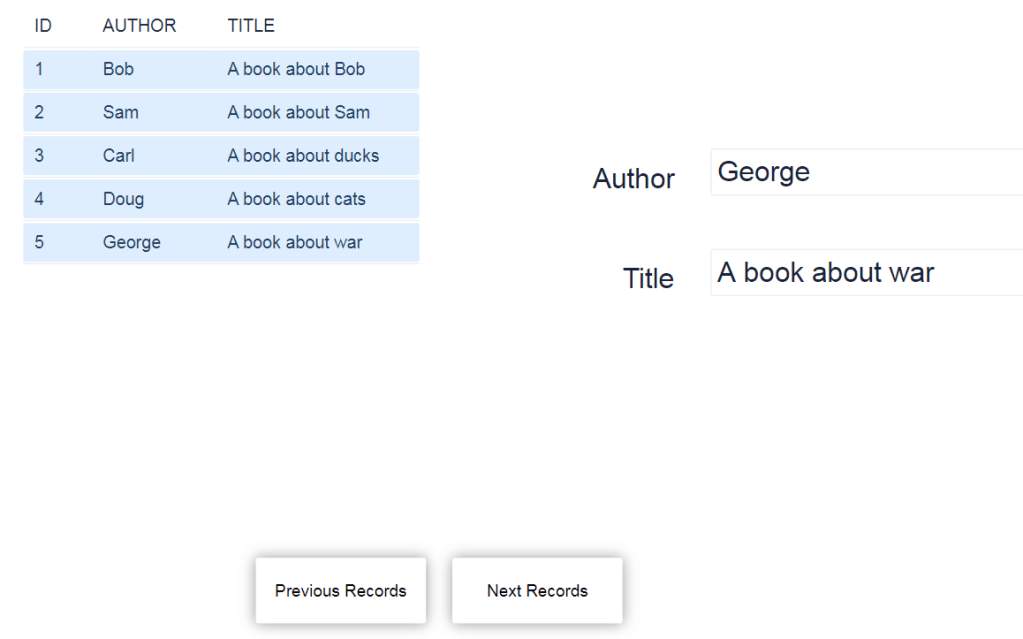 Now let’s write the logic for the update. Create a function that updates based on the id, and updates the Author and Title. Pass some test values and see if it updates.