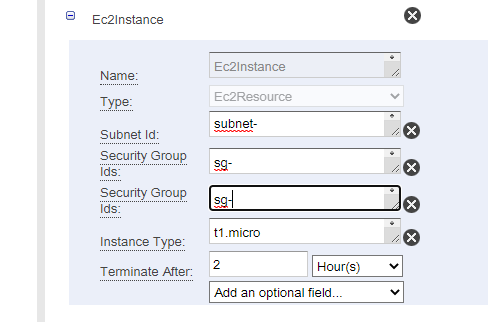 But, it is located in the UI under Ec2Resource, you have to add the subnet and Security Group ID