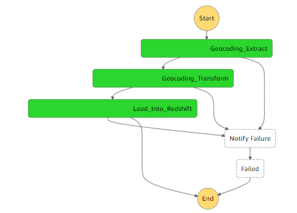 So Parse the response, pulling out what data you need, and then load it back into Redshift. The step function looks like this.
