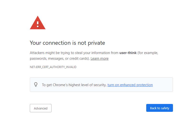 Since its a self signed certificate we need to tell the browser to trust it.