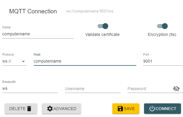 const connectUrl = 'wss://computername:9001'