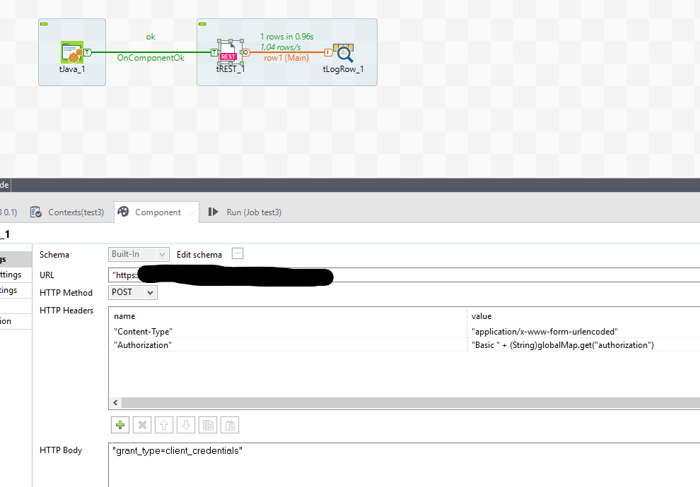 In the tRest, add a HTTP Header called “Authorization” and set it to “Basic ” + (String)globalMap.get(“authorization”):