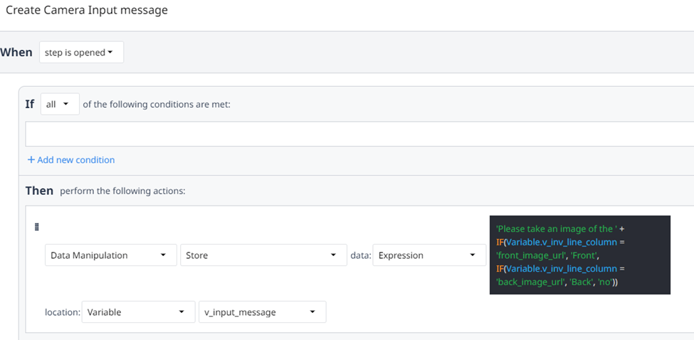 Then on the camera widget you can have a dynamic Input message based on the variable being passed in