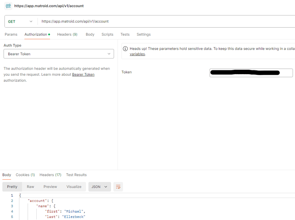 In order to use the API, you will need to register an account at matroid.com and find your Access Token. Once registered, you can find the token in your Account Settings page. When making RESTful API calls, make sure to supply the authentication token. For example: