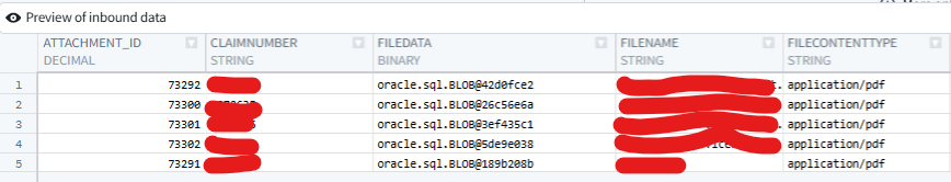 So, first step is to load our database records into a dataset (Blobs and all), if your data has a monotonically increasing column (in this case the attachment_id) then you can enable an incremental reload.