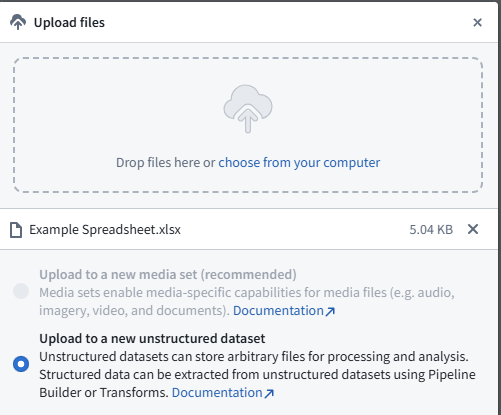 3b) Use a workshop app to upload to unstructured dataset, and then pipeline