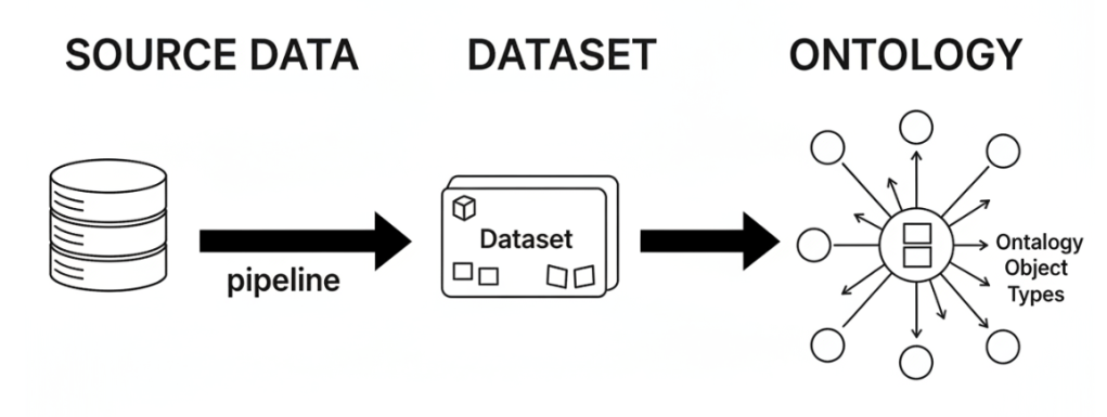 With the Ontology being our mycorrhizal fungal network, naturally, we will need to interact with our data. There are almost innumerable ways to interact with the ontology, but today I’ll talk about my current favorite technique. It’s pretty common to connect your source data, pipeline it into a dataset and then use that as the backing of your ontology object types. (Foundry 101)