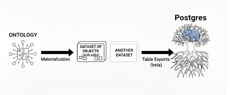 This creates a dataset of your objects (with edits) that then you can pipeline to another dataset (if needed) and then use a new beta feature ‘Table exports’ (It supports MSQL server, Postgres, Oracle, and some SaaS)