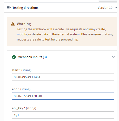 Test the call (Pay attention that the industry standard is lon, lat)