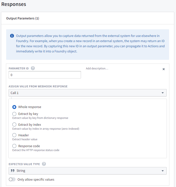 Then do an action that calls the webhook and passes the response to the function (I renamed the response from 0-> response)