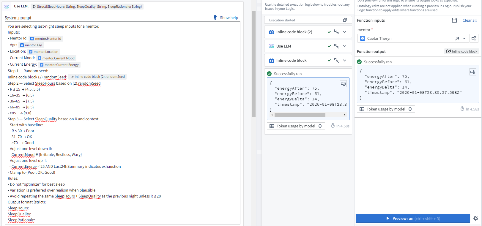 Ok, lets make a mentor. Fire up AIP Logic. Let’s have only the purpose be user defined, and the rest derived.